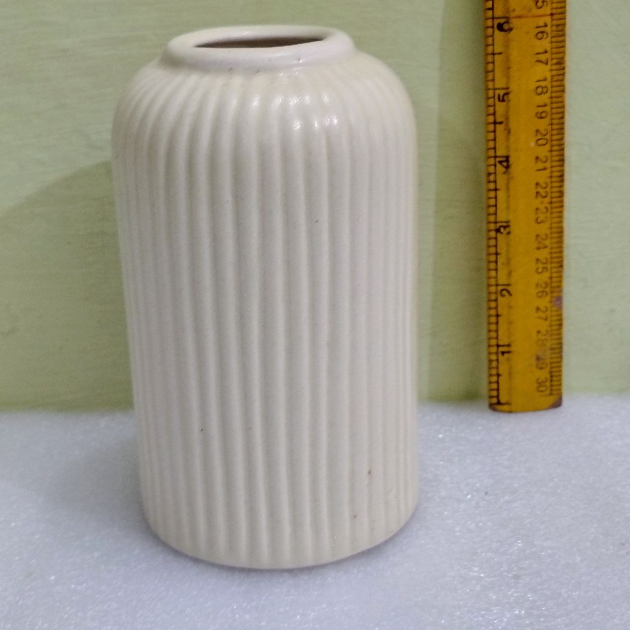 This white ribbed ceramic vase seamlessly integrates with multiple interior styles: